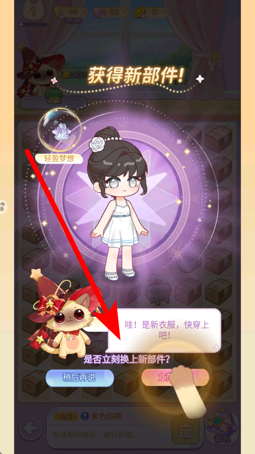 4、時裝穿戴時,在獲得新部件后,可選擇立刻換上新部件,為角色穿上新衣服,打造獨(dú)特的角色形象,增添游玩的趣味性與個性化體驗。