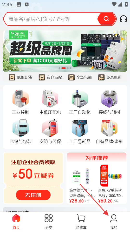 1、打開京東工品匯首頁,點擊右下角我的選項。