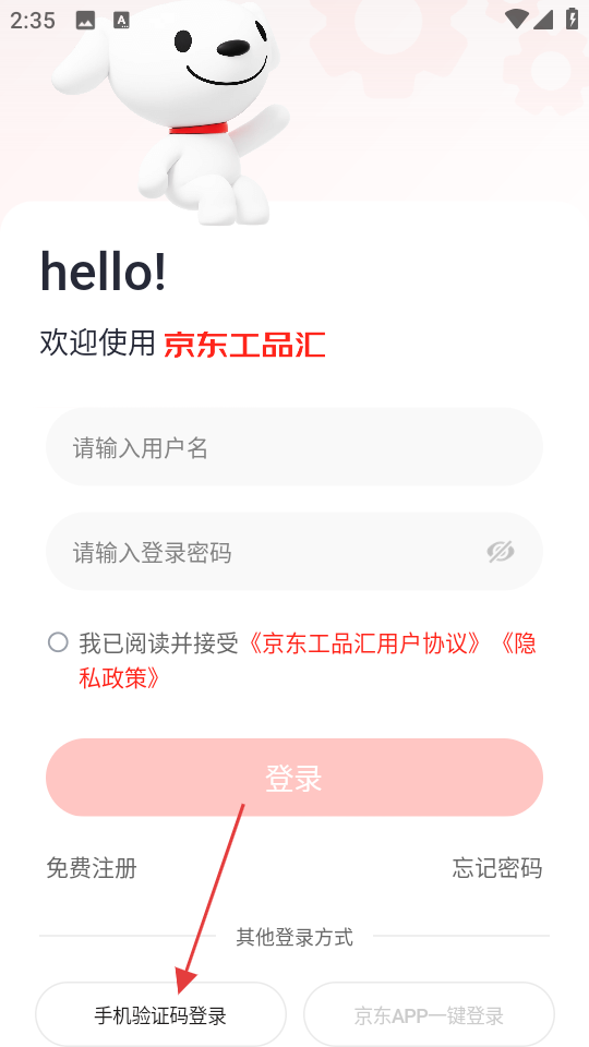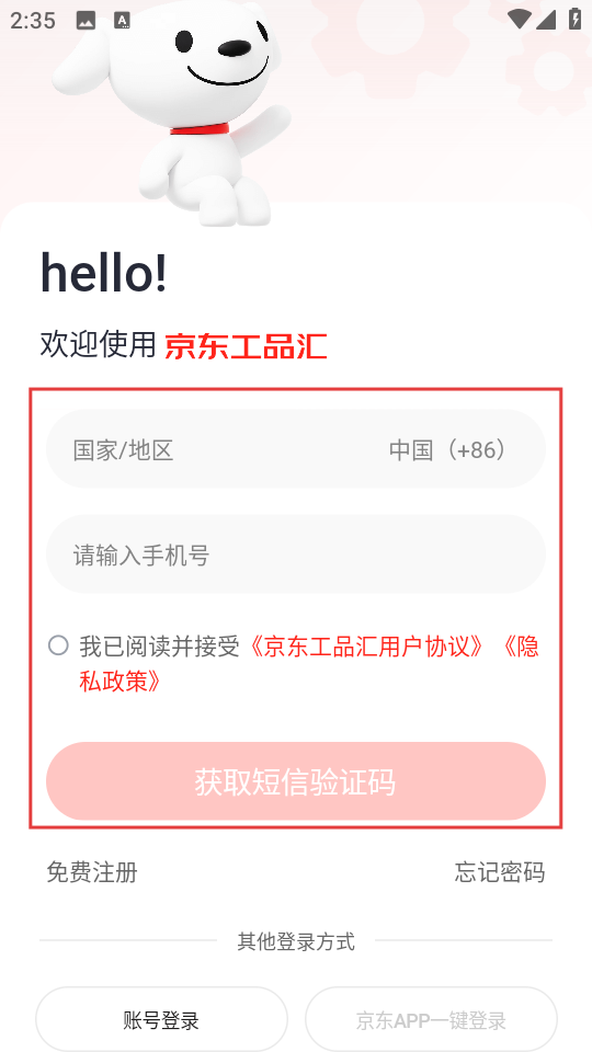4、在手機驗證碼登錄界面,輸入好信息勾選協(xié)議,完成登錄。