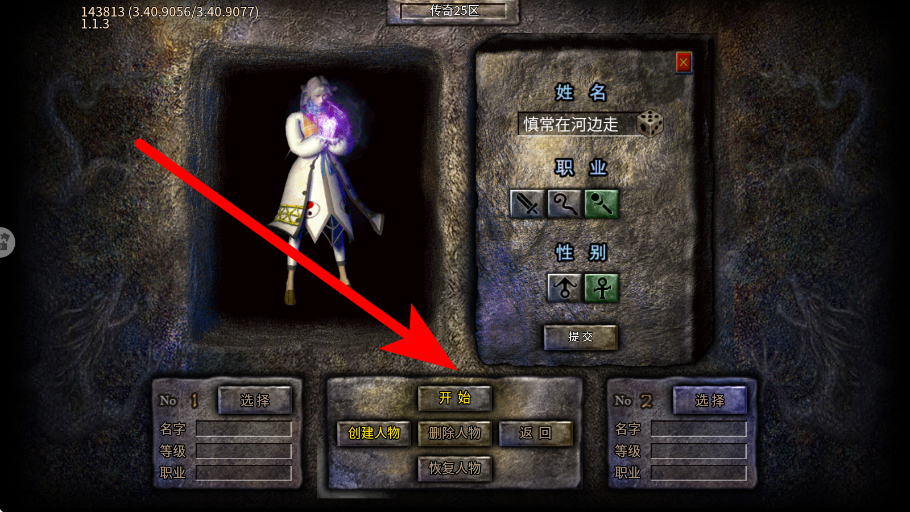 1、創(chuàng)建道士角色時,在角色創(chuàng)建界面,選擇職業(yè)為道士,設(shè)置好姓名、性別等信息,點擊提交,完成道士角色的創(chuàng)建,開啟在游玩之旅。