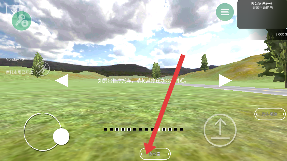 3、當要出售摩托車時,駕駛摩托車朝著箭頭指向的辦公室標識方向行駛,將摩托車停在辦公室附近,滿足出售摩托車的位置要求。
