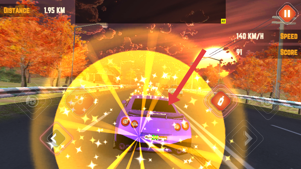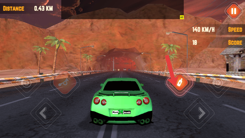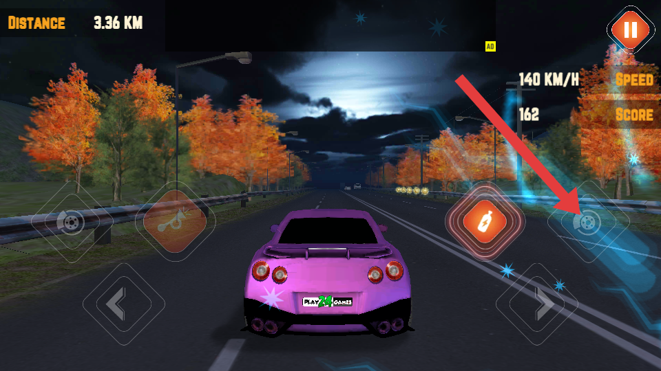 1、在行駛過程中,點(diǎn)擊箭頭指向的道具按鈕,可使用道具,助力賽車在賽道上獲得優(yōu)勢,比如提升行駛的速度。