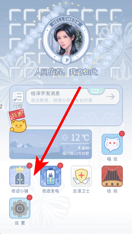 4、找到奇跡小鋪這類店鋪入口,進(jìn)入后可挑選喜歡的裝扮,使用獲取的資源購買,用來裝飾場景,讓游戲畫面更符合自己的喜好。