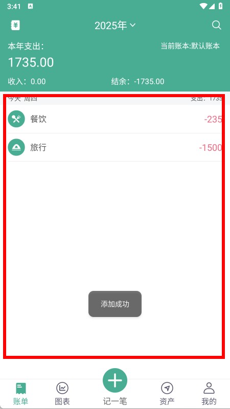 4. 保存成功后,在賬單頁(yè)面即可查看記錄的旅行支出信息,完成記賬操作。