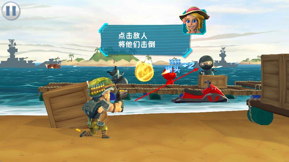 1、根據(jù)提示點擊敵人將他們擊倒,點擊場景中的敵人,精準射擊可獲得爆頭等額外效果,開啟戰(zhàn)斗進程。