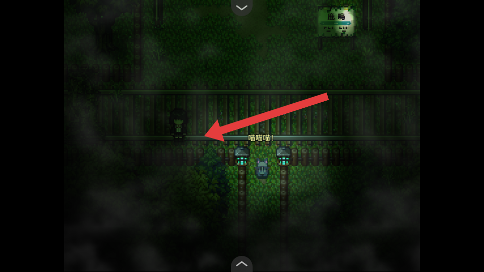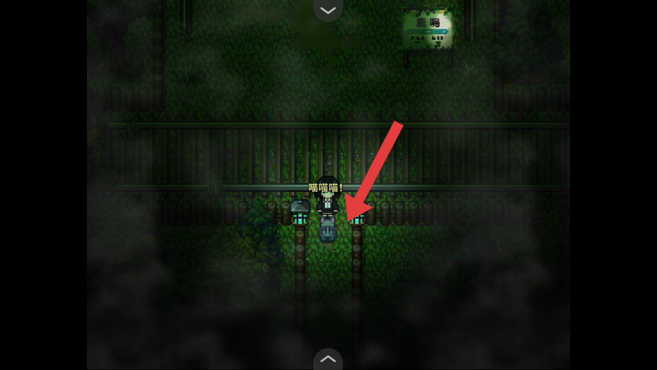 1、在鹿鳴場景的鐵軌區(qū)域,沿著箭頭指向的方向移動角色,探索該區(qū)域的互動點或隱藏元素,推進游戲劇情。