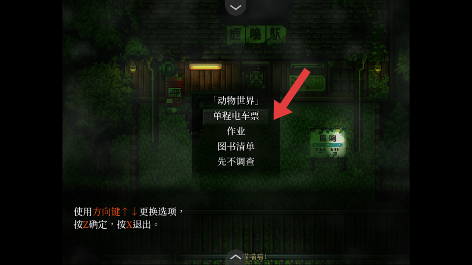4、在調(diào)查選項界面,選擇箭頭指向的單程電車票選項,按Z鍵確定,獲取該道具,這是推進游戲進程的重要物品。