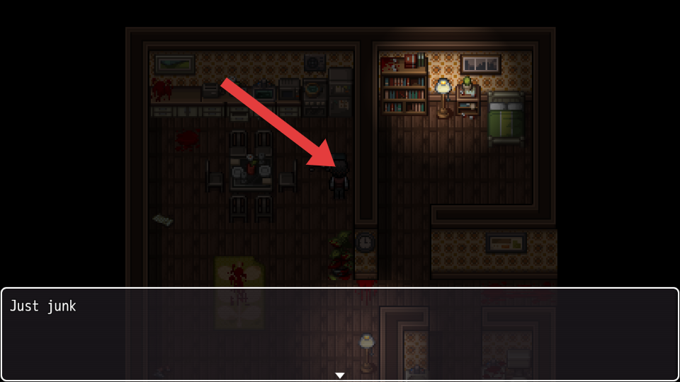 1、在房屋場(chǎng)景中,沿著箭頭指向的方向移動(dòng)角色,探索房間的各個(gè)區(qū)域,尋找生存所需的道具或線索,同時(shí)避開僵尸。