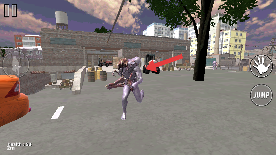 1、在城市區(qū)域遭遇箭頭指向的喪尸時,需快速判斷其移動軌跡,利用周圍環(huán)境如叉車、建筑躲避或尋找時機反擊。
