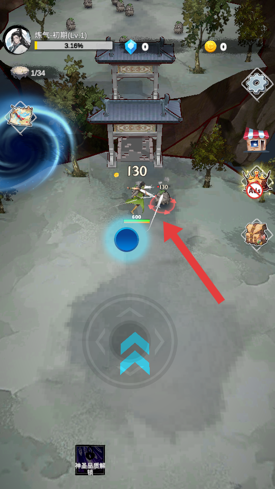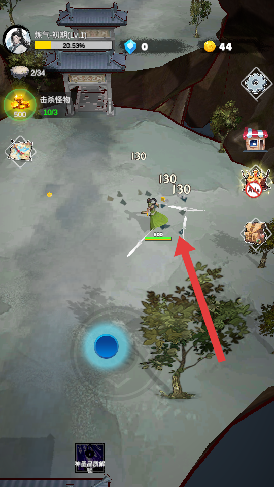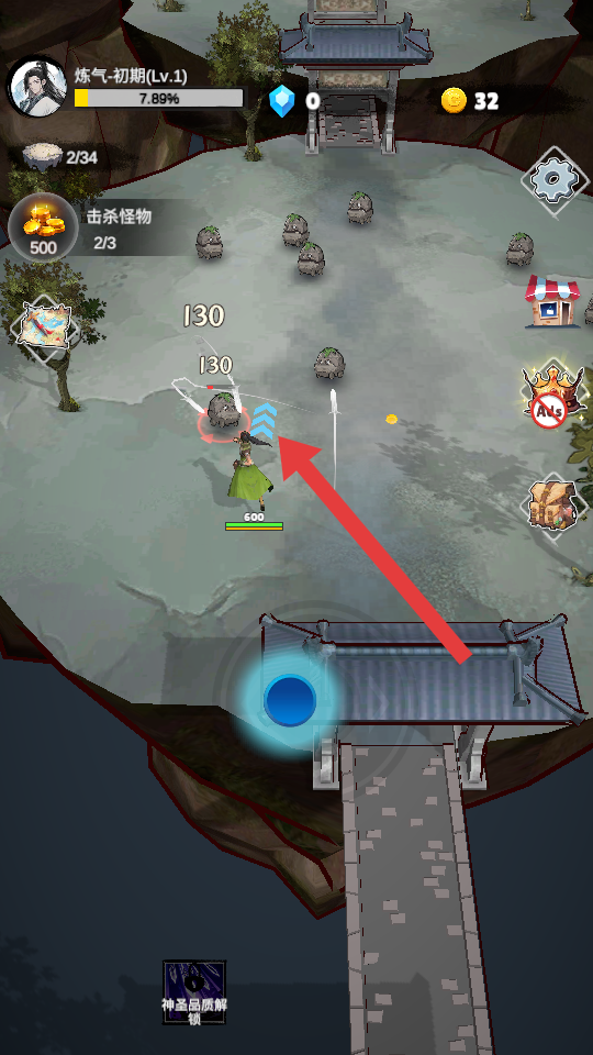 2、朝著箭頭指向的怪物方向移動,與怪物戰(zhàn)斗,通過攻擊可獲取經(jīng)驗(yàn)、金幣等獎勵,提升角色等級。