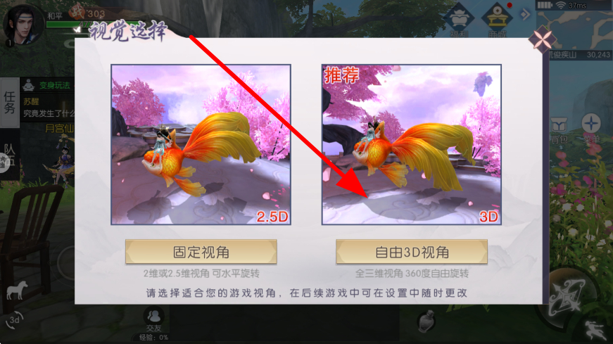 2、視覺(jué)選擇界面,有2點(diǎn)5D固定視角和3D自由視角可供挑選,3D視角能360度自由旋轉(zhuǎn),可根據(jù)喜好選擇,后續(xù)還能在設(shè)置中更改。