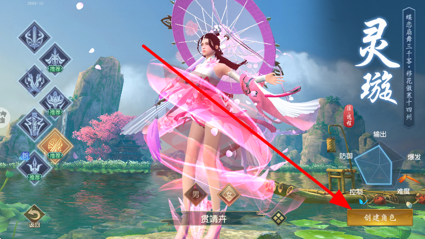 1、新手玩家開局,可以選擇不同的職業(yè)角色,像靈璇等,選擇心儀的職業(yè)確定角色后,點擊創(chuàng)建角色,為開啟做好準備。