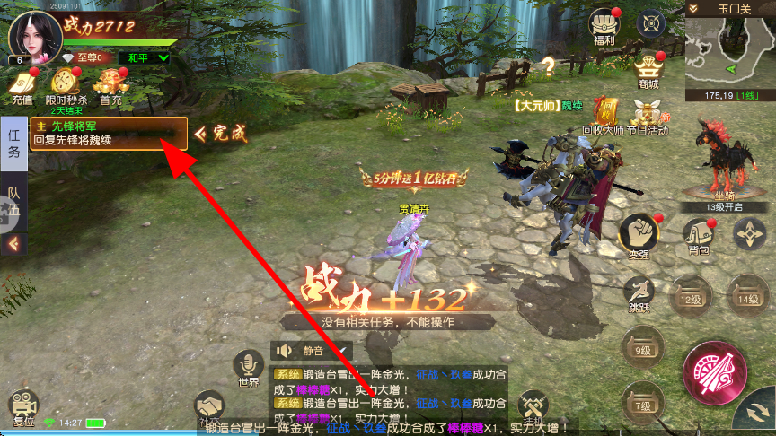 2、進入游戲后,會有主線任務指引,如回復先鋒將魏續(xù)等任務,跟隨任務提示,推進主線任務進程,在完成過程中提升角色戰(zhàn)力。