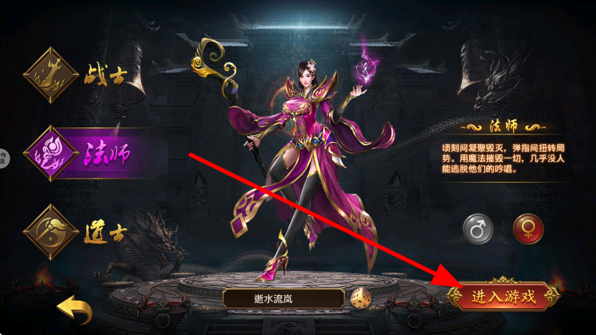 1、選擇不同職業(yè),像法師這類能頃刻凝聚毀滅、彈指扭轉(zhuǎn)局勢的職業(yè),確定職業(yè)后,點(diǎn)擊進(jìn)入游戲,開啟奇幻戰(zhàn)斗之旅。
