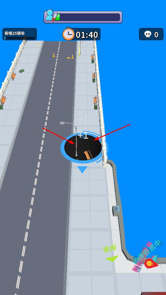1、操控黑洞在道路等區(qū)域移動(dòng),靠近車輛等物體時(shí),黑洞會將其吞噬,這是積累成長的關(guān)鍵操作,開啟吞噬進(jìn)程。