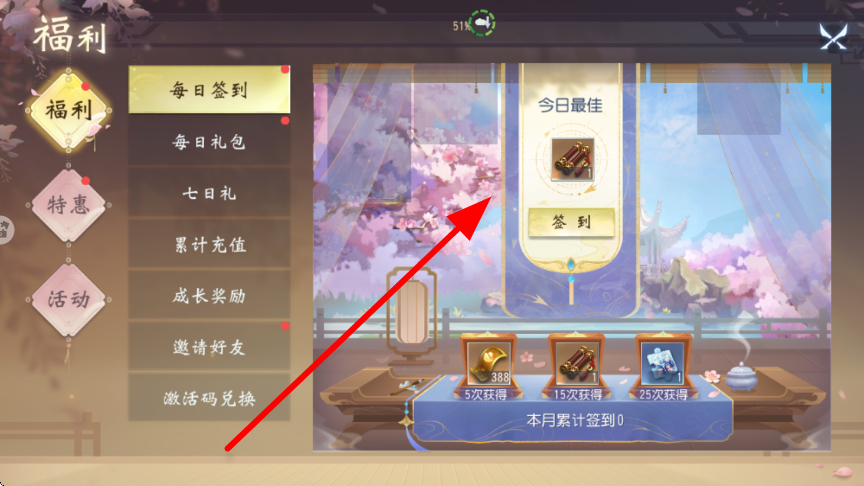 4、還能在福利界面,進(jìn)行每日簽到等操作,領(lǐng)取相應(yīng)獎勵,這些獎勵能助力角色培養(yǎng)成長,更好地闖蕩冒險武俠世界。