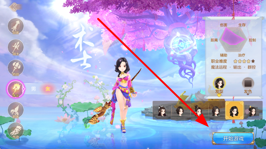 1、玩家開局選擇創(chuàng)建不同職業(yè),像術(shù)士這類魔法遠(yuǎn)程、擅長輸出與群控的職業(yè),選好職業(yè)并設(shè)置好角色形象后,點(diǎn)擊開始游戲,開啟幻想冒險之旅。