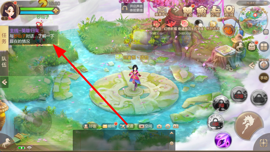 3、會有主線任務(wù)指引,如與妙仙子對話等任務(wù),跟隨任務(wù)提示,推進(jìn)主線任務(wù)進(jìn)程,在完成任務(wù)過程中了解幻想世界的故事,提升角色實(shí)力。