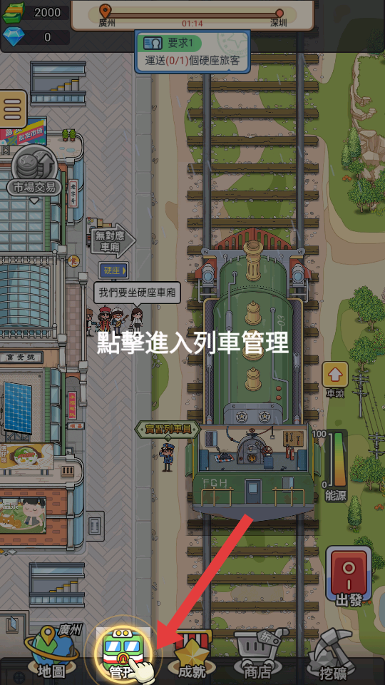 1、初始經(jīng)營與資金積累:以啟動資金購買基礎車頭與車身,解鎖座位后承接乘客運輸任務,親自完成檢票、餐食售賣等服務,通過乘客反饋賺取初始資金。