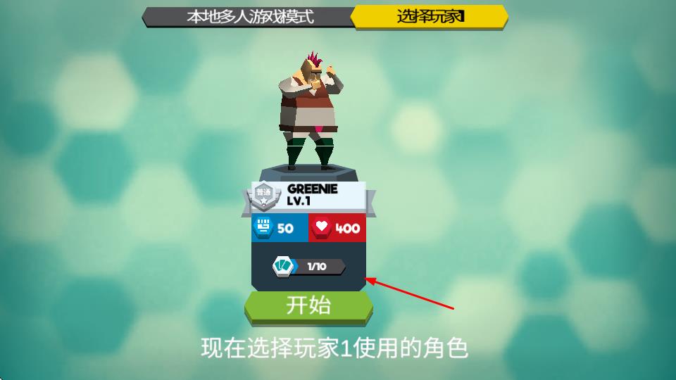 1、進入本地多人游戲模式后,選擇玩家1使用的角色,查看角色屬性,點擊開始進入對戰(zhàn)場景。