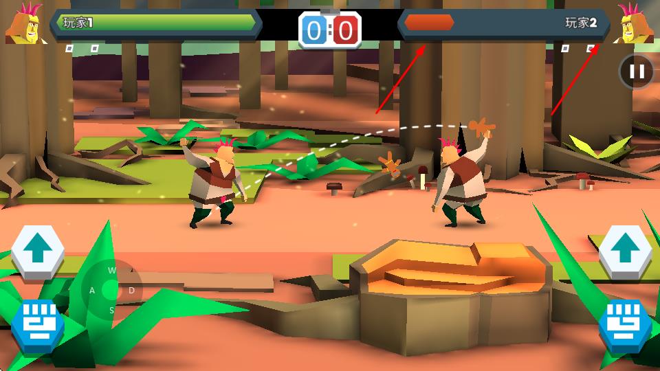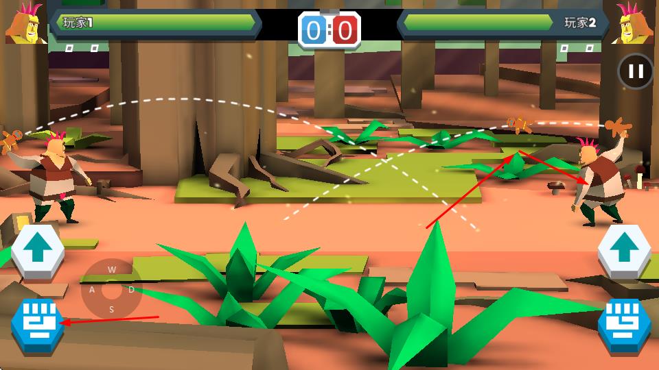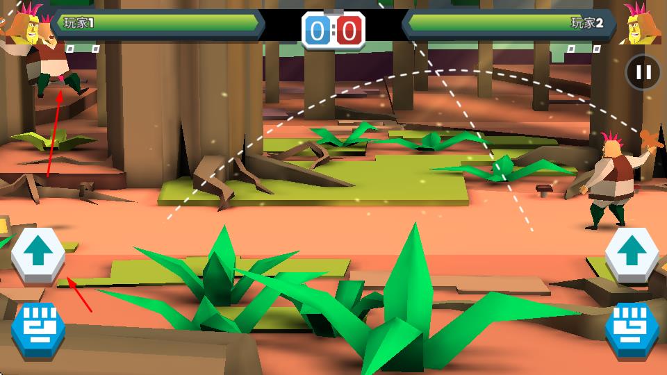 2、在森林對戰(zhàn)場景中,通過虛擬按鍵操控角色移動,調(diào)整位置以靠近對手,為攻擊創(chuàng)造條件。