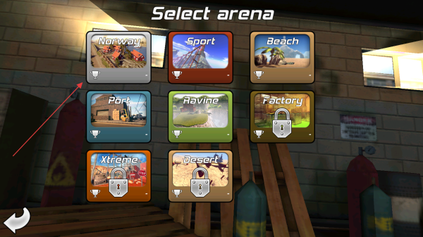 2、游戲有Selectarena(選擇競技場)選項,這里有多個不同場景的競技場,像Norway(挪威)Sport(運動)等,選擇已解鎖的競技場,開啟不同環(huán)境下的騎行挑戰(zhàn)。
