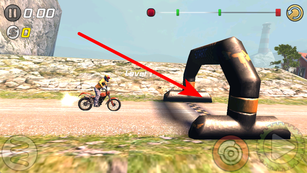 3、進入關(guān)卡后,操控摩托車沖向標識的起點,計時隨即開始,需平穩(wěn)駕駛通過賽道,完成特技與競速任務(wù)。