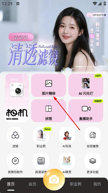 2、在無(wú)他相機(jī)首頁(yè),點(diǎn)擊圖片精修,進(jìn)入圖片選擇頁(yè)面。