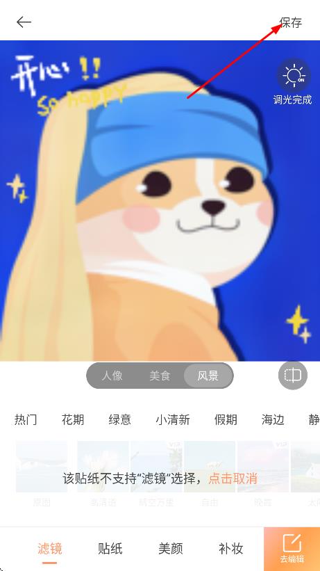 4、對(duì)圖片進(jìn)行精修后,點(diǎn)擊右上角保存,保存精修后的圖片。