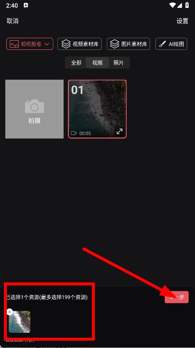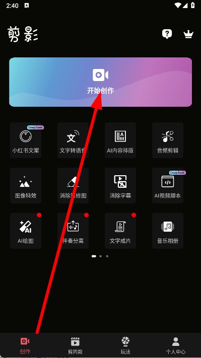 1、點擊開始創(chuàng)作按鈕,進入素材選擇頁面。