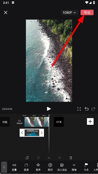 4、編輯完成后點擊導(dǎo)出按鈕,將編輯好的視頻導(dǎo)出。
