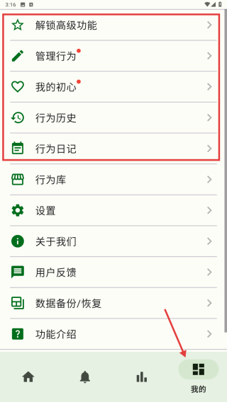 4、在我的功能界面當中查看解鎖高級功能和管理行為等。