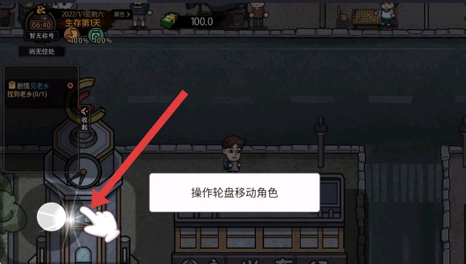 1、通過左側輪盤操控角色移動,在城市場景中探索,完成劇情見老鄉(xiāng)任務,尋找老鄉(xiāng)推進劇情,留意互動元素。