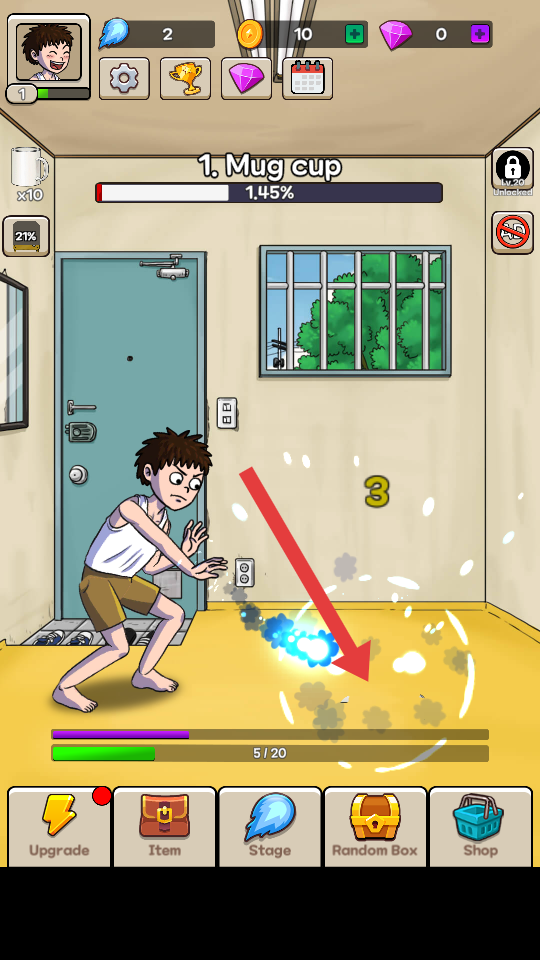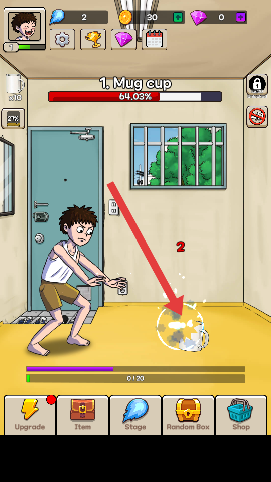 4、持續(xù)對目標物品發(fā)起攻擊,其破壞進度,在摧毀物品的過程中獲取大量金幣和經(jīng)驗,不斷提升游戲等級,解鎖更多內(nèi)容。