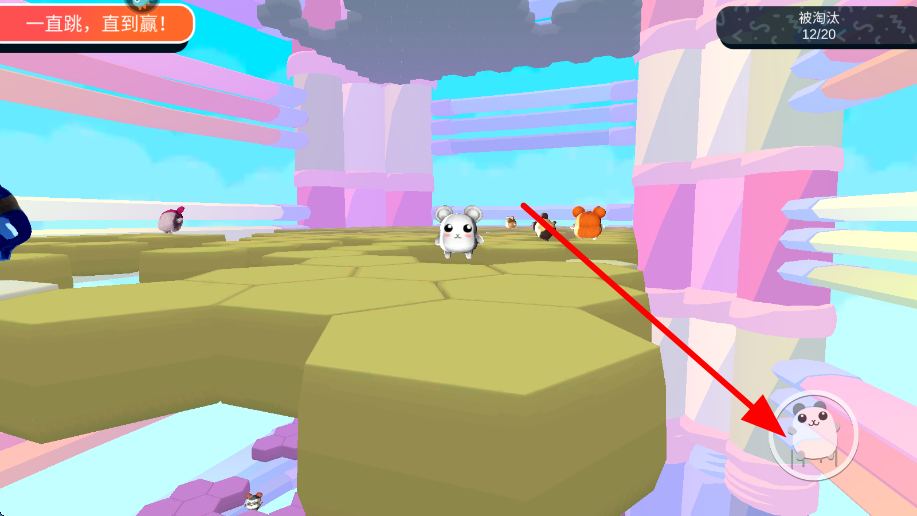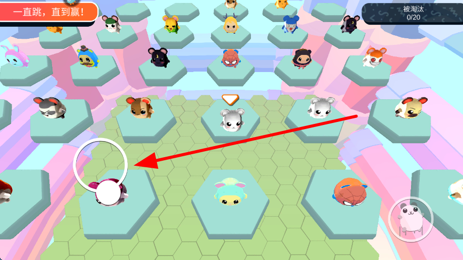4、點(diǎn)擊右下角的跳躍按鈕,讓角色進(jìn)行跳躍,躲避危險(xiǎn)區(qū)域,同時也要注意其他對手的動態(tài),避免被干擾,努力成為最后的跳躍者。
