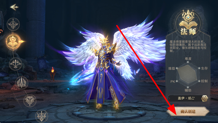 1、進(jìn)入游戲后,創(chuàng)建法師等職業(yè),了解特點(diǎn)后,點(diǎn)擊確認(rèn)創(chuàng)建,就能開啟屬于自己的冒險之旅,不同職業(yè)發(fā)展與戰(zhàn)斗方式有所不同。