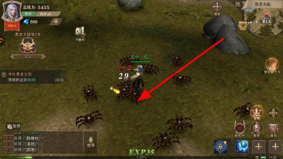 3、玩家在接受清理蜘蛛等戰(zhàn)斗任務(wù)后,然后前往指定區(qū)域,與怪物展開戰(zhàn)斗,通過攻擊怪物獲取經(jīng)驗(yàn)與裝備,提升角色的戰(zhàn)斗力。