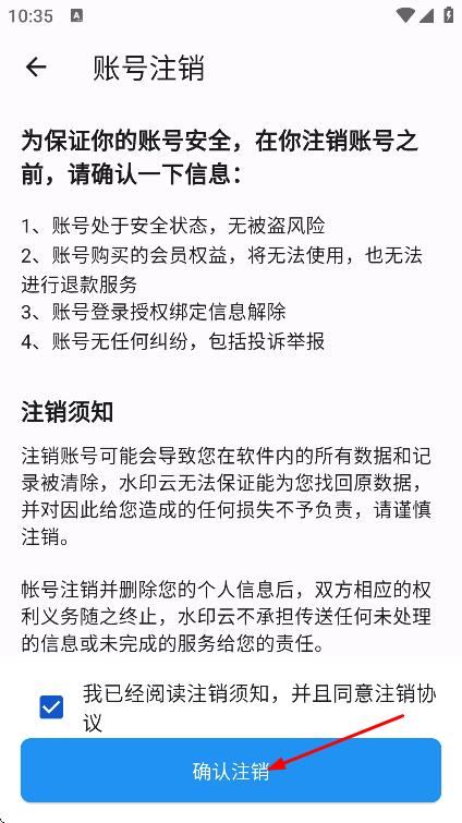 4、在賬號(hào)注銷頁(yè)面,點(diǎn)擊確認(rèn)注銷,注銷賬號(hào)。