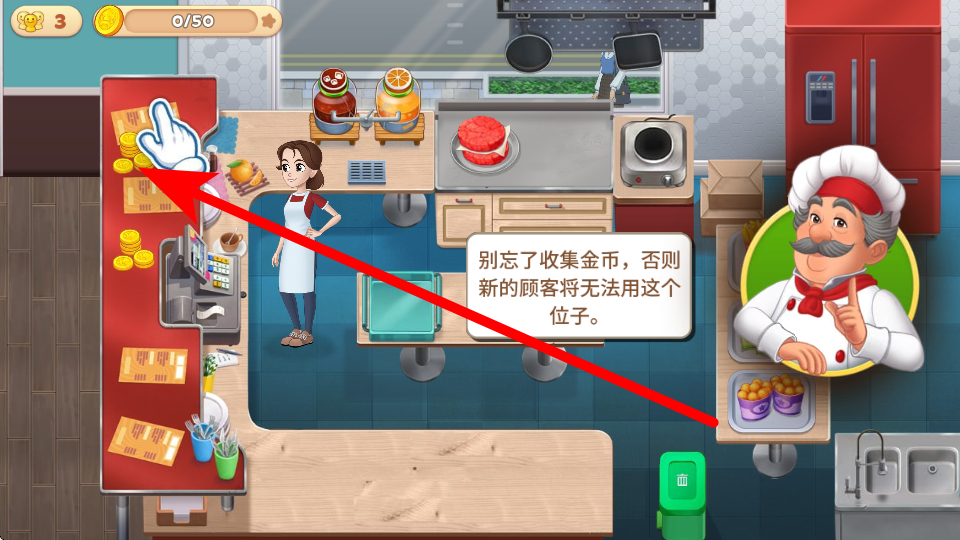 3、顧客用餐結束后,要記得收取顧客留下的金幣,這些金幣是餐廳經(jīng)營的重要資源,能用于餐廳的升級、食材的采購等,助力餐廳發(fā)展。