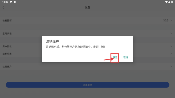 3、在設(shè)置頁(yè)面,點(diǎn)擊注銷賬戶選項(xiàng),彈出注銷賬戶確認(rèn)提示框。