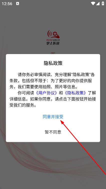 1、在彈窗中,點(diǎn)擊同意并接受,進(jìn)入首頁。