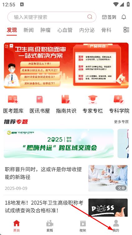 2、參與醫(yī)學(xué)直播:在“醫(yī)學(xué)直播”板塊查看近期學(xué)術(shù)會議、專家講座等直播預(yù)告,點(diǎn)擊“預(yù)約”提醒,直播開始時可直接進(jìn)入觀看,還能提問交流。