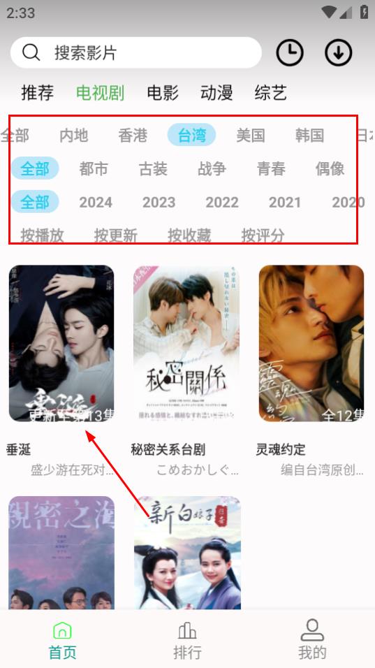 2、在電視劇分類頁面,通過篩選條件找到想看的電視劇,如垂涎,點擊進(jìn)入播放頁面。