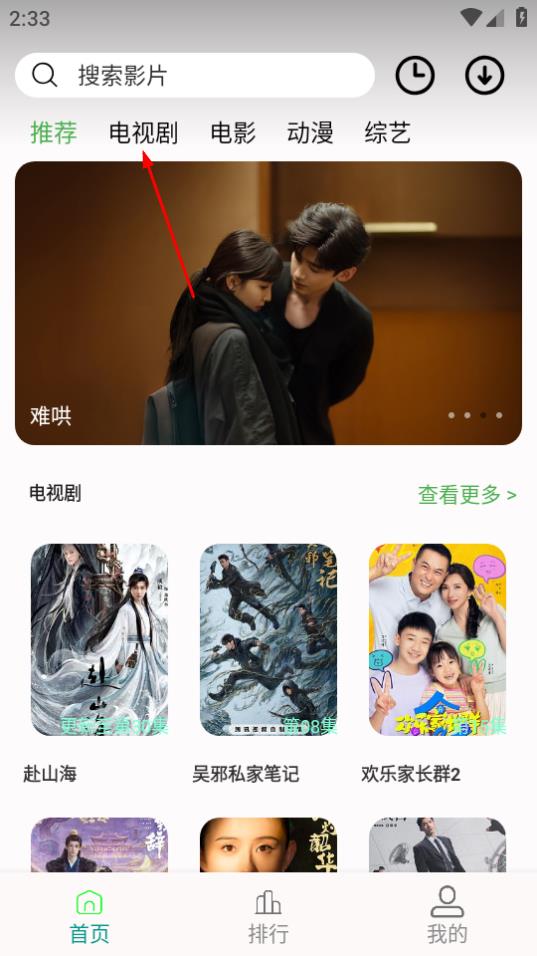 1、查找目標(biāo)影視:打開應(yīng)用后,可在首頁推薦區(qū)瀏覽熱門內(nèi)容,或點擊頂部分類欄如電視劇,篩選品類,也可通過搜索欄輸入影視名稱,快速定位目標(biāo)資源。