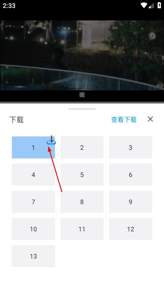 4、在劇集選擇下載頁面,點擊要下載的劇集,如1,開始下載。