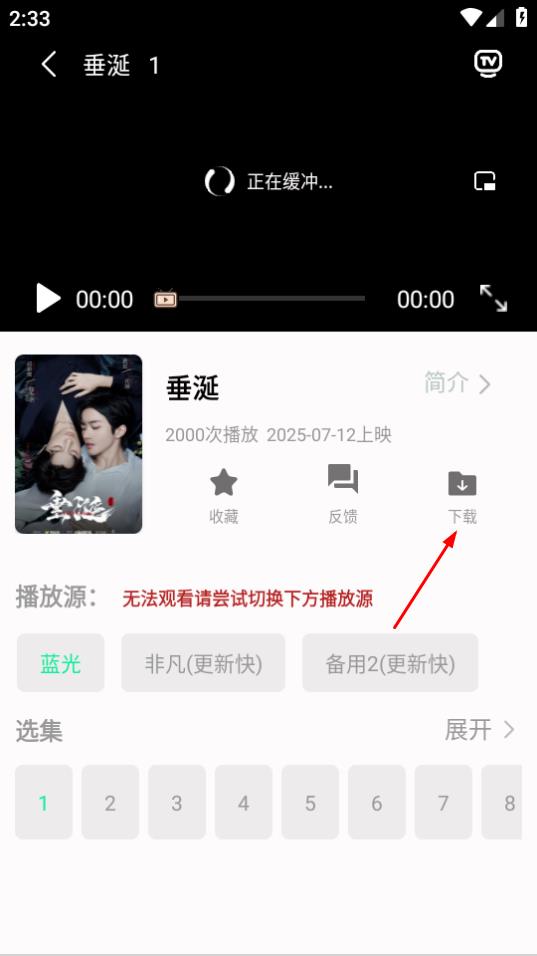 3、在電視劇播放頁面,點擊下載,進(jìn)入劇集選擇下載頁面。