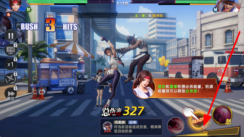 3、通過普攻和重拳攻擊對手,積攢必殺能量,當必殺能量積滿時,能釋放必殺技,必殺技往往能對對手造成大量傷害,扭轉(zhuǎn)戰(zhàn)局。
