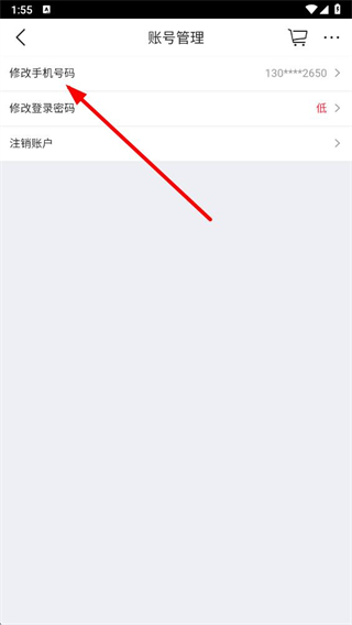4、在賬號(hào)管理頁面,點(diǎn)擊修改手機(jī)號(hào)碼的選項(xiàng)設(shè)置。