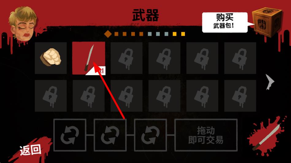 4、進入武器界面后,可選擇刀作為武器,裝備后能提升角色的攻擊能力,在遭遇敵人時可用于自衛(wèi)或反擊,助力通關。