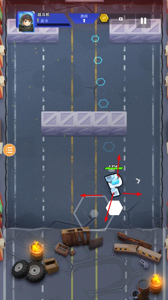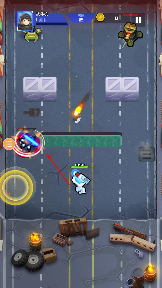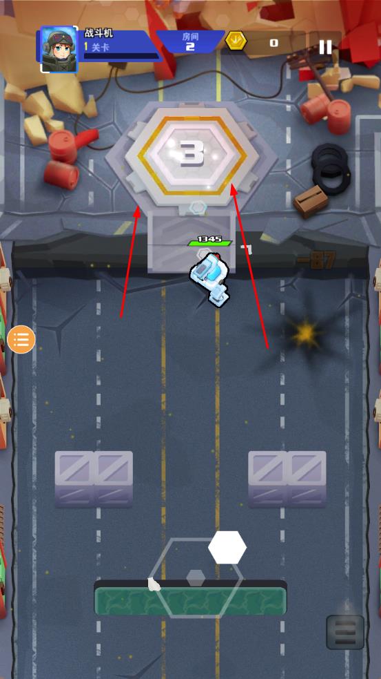 1、進入游戲界面后,操控戰(zhàn)斗機在道路上移動,可通過滑動等操作調(diào)整方向,這是開啟游戲的關(guān)鍵操作。